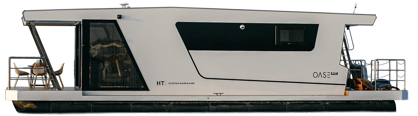 This houseboat combines the architecture of a modern apartment with shipyard precision. The catamaran design, thoughtful insulation and premium materials allow you to live comfortably all year round. Created for living, leisure and investment.